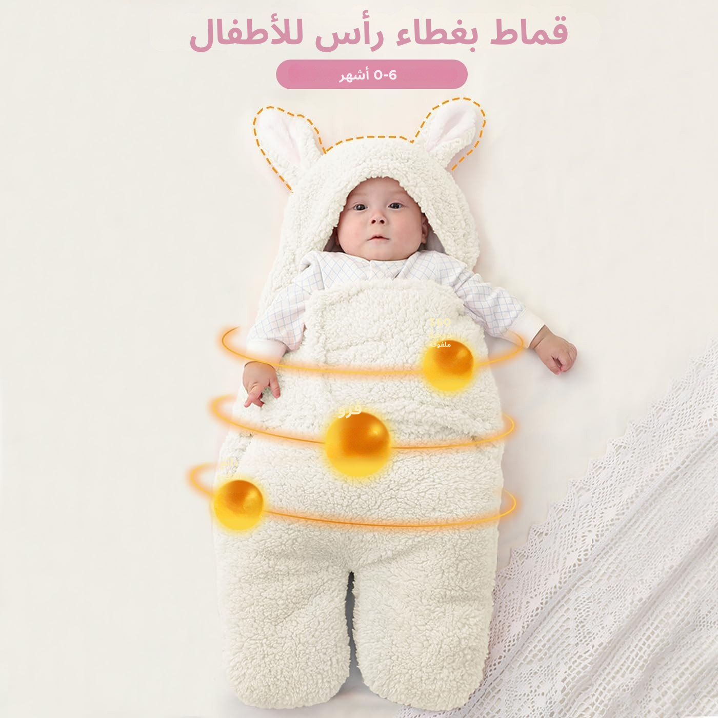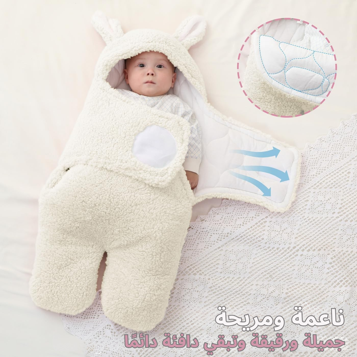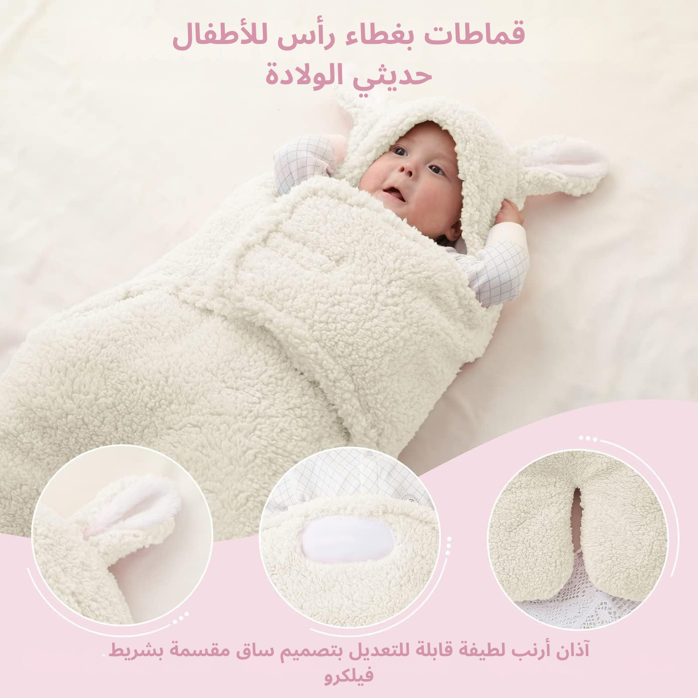 قماط أرنب لطيف: تحتوي بطانية التقميط ذات القلنسوة على آذان أرنب لطيفة في الأعلى للحفاظ على دفء أذني الطفل بينما يبدو الطفل لطيفًا للغاية، كما أن تصميم الغطاء المقاوم للرياح يحافظ على دفء الطفل في جميع الأوقات عندما يكون في الخارج وفي جميع أنحاء المنزل. حقيبة النوم هذه هدية رائعة للأطفال حديثي الولادة.