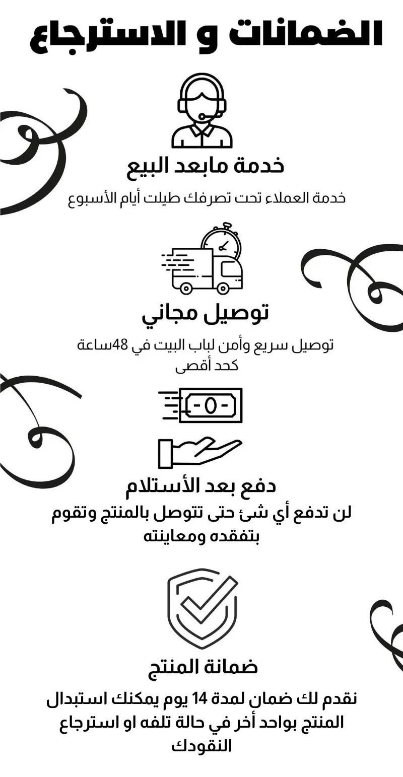 رابعا : يمكنكم فتح المنتوج والتاكد من صحته وجودته قبل الدفع لرجل التوصيل.